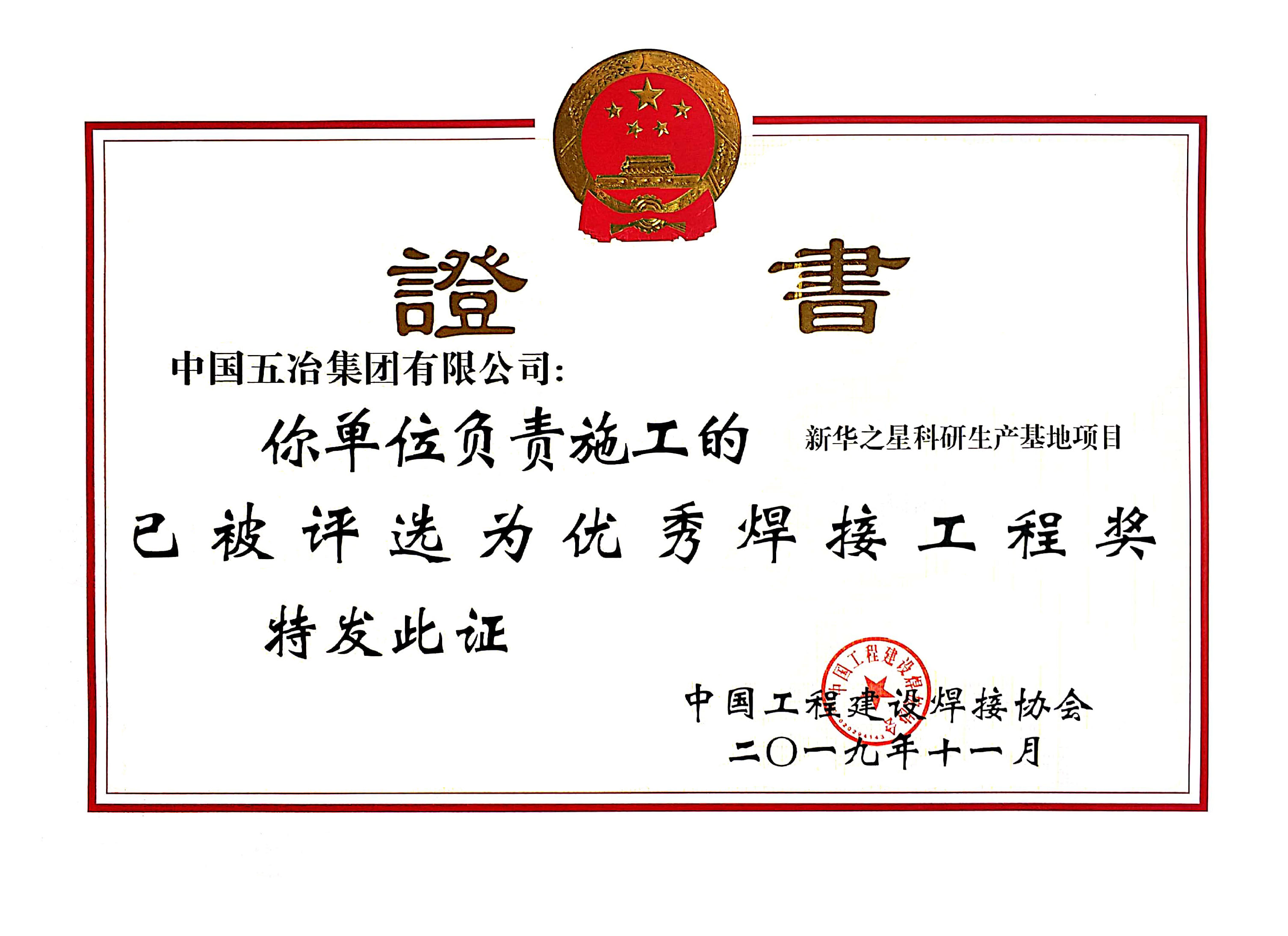 新华之星科研生产基地项目-2019年度全国优秀焊接工程奖