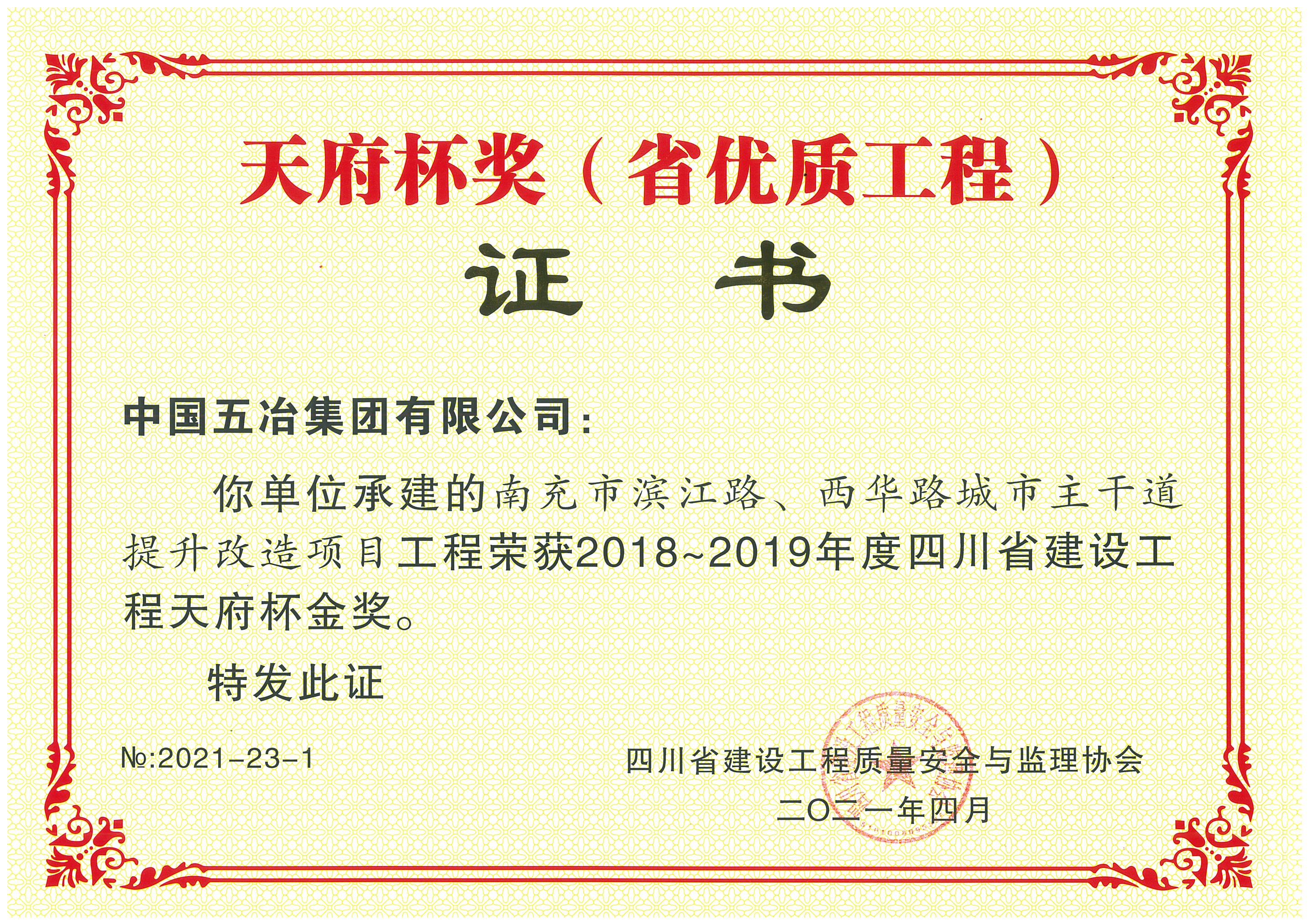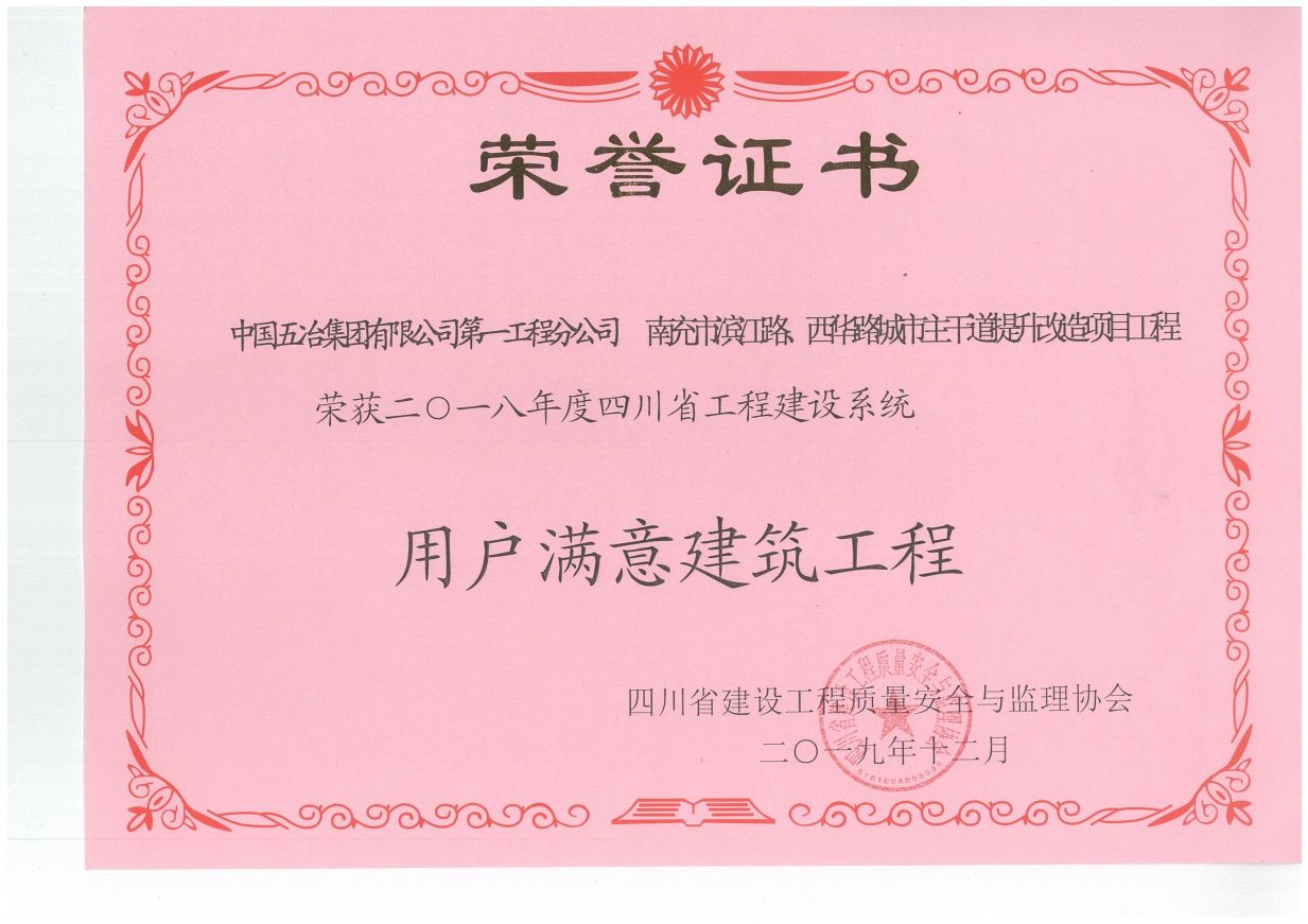 14-南充市滨江路、西华路城市主干道提升改造项目-2018年度四川省用户满意建筑工程证书