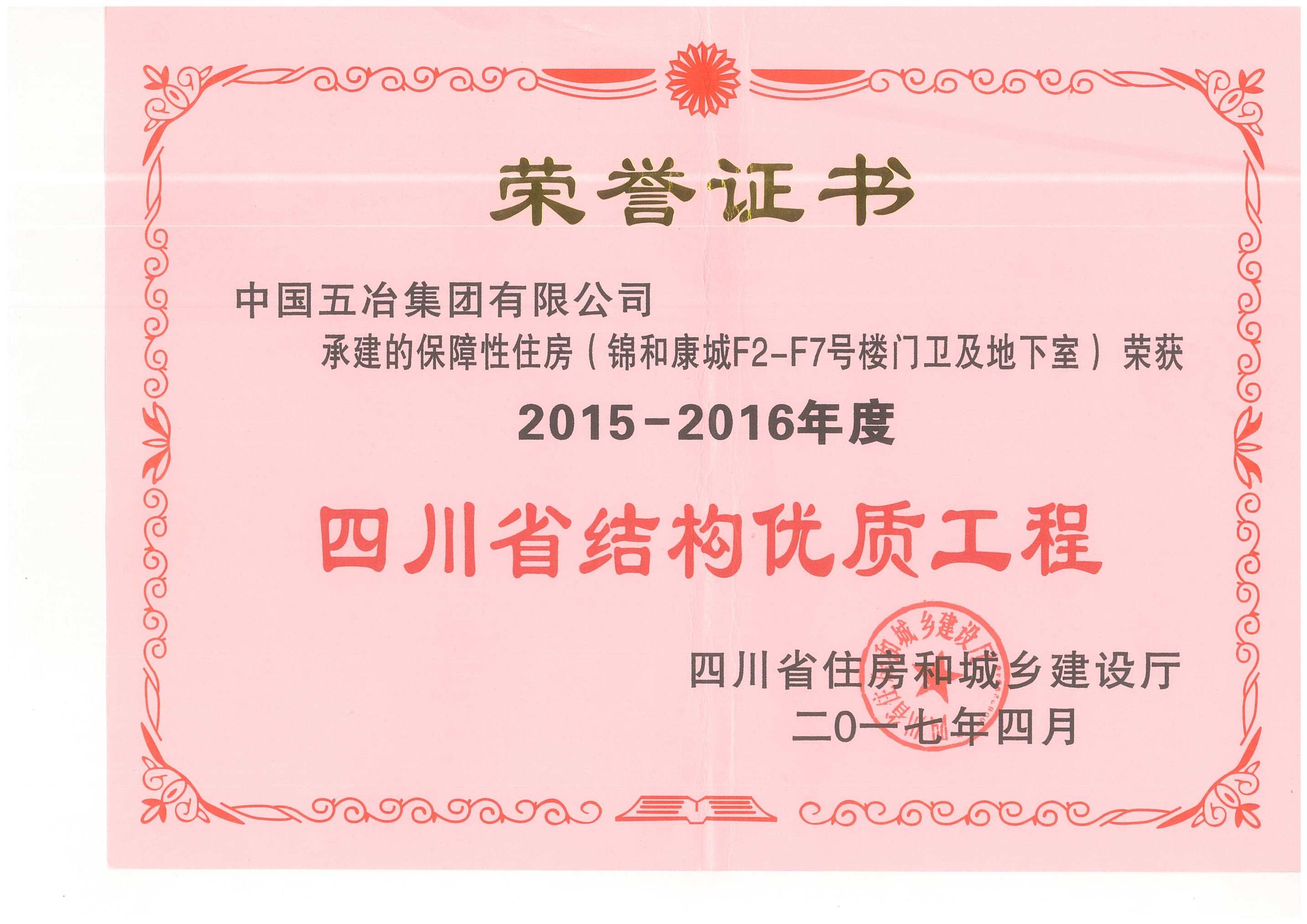 锦和康城F地块2015-2016年度四川省结构优质工程