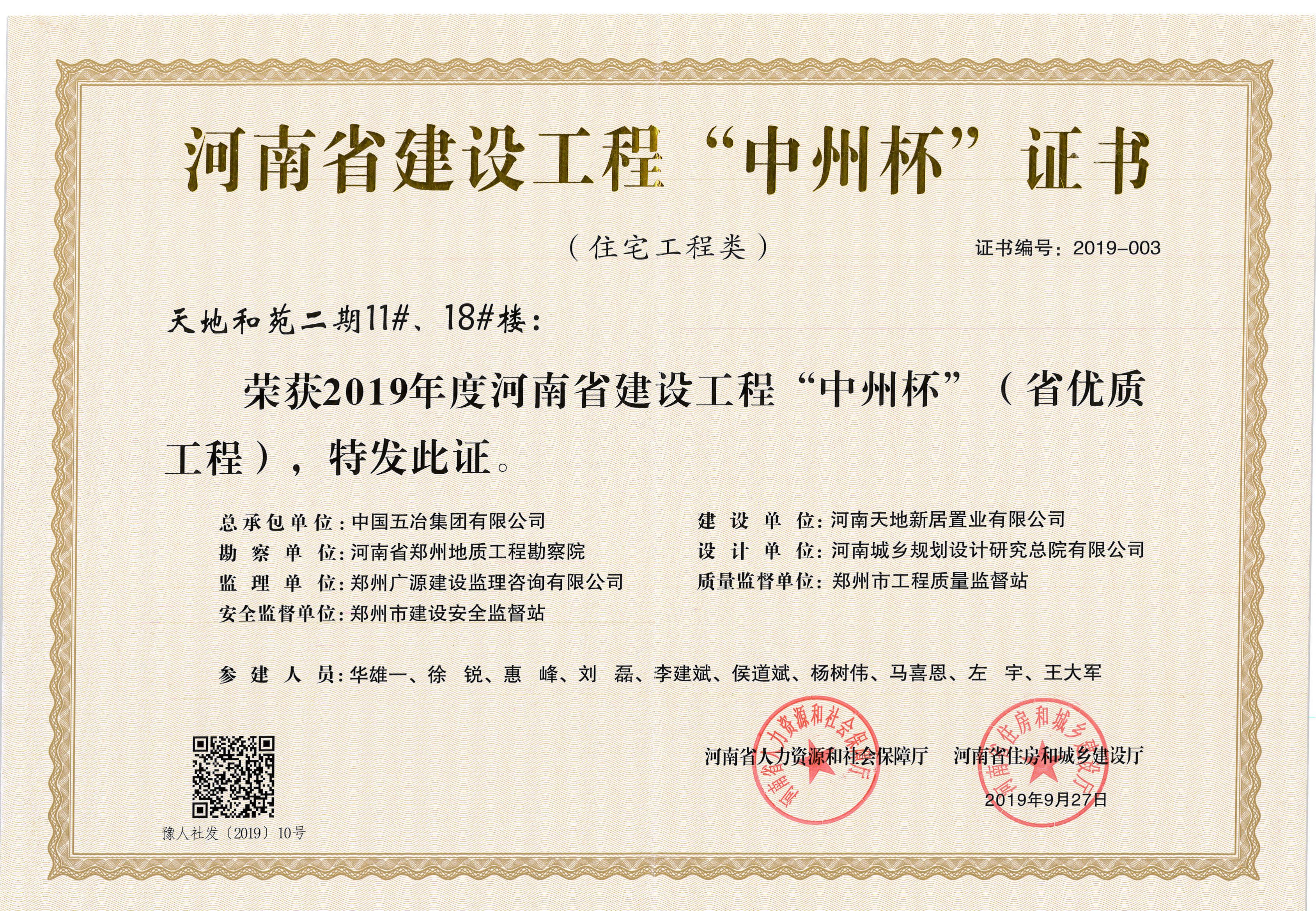 天地和苑二期11#、18#楼-2019年度河南省中州杯