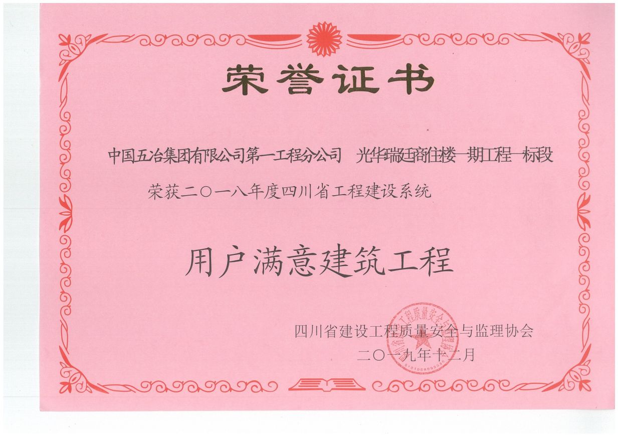 光华瑞廷商住楼一期工程一标段项目--2018年度四川省用户满意建筑工程证书