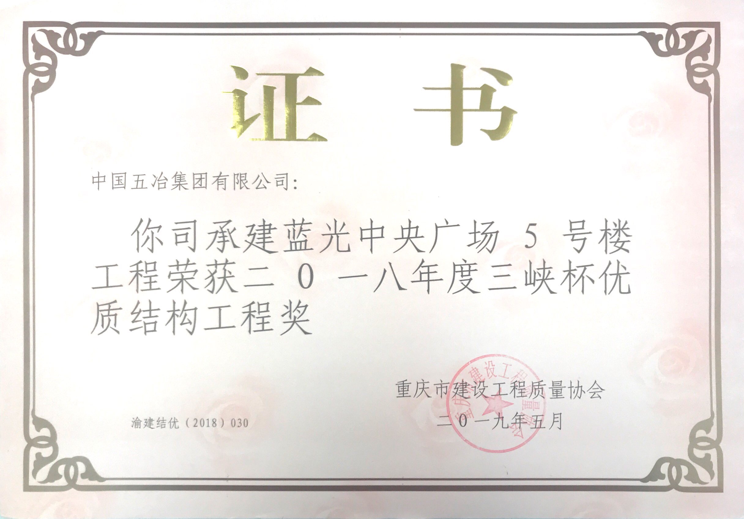 蓝光中央广场5号楼-2018年度重庆市三峡杯