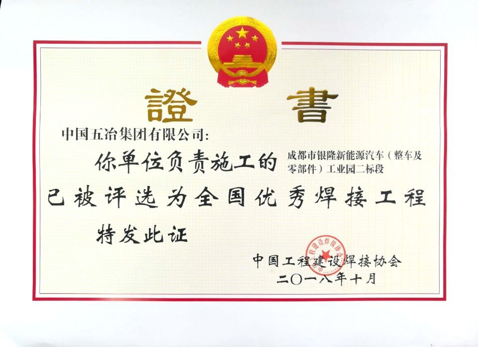 成都市银隆新能源汽车(整车及零部件)工业园二标段-2018年度全国优秀焊接工程