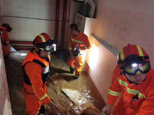 演武街停车场水不断涌进地下室,“从我们的小腿,猛涨到了腰,大家却一刻也不敢松懈,在水里连续泡了六七个小时也不怕苦不怕累。”参加抢险的队员介绍说。