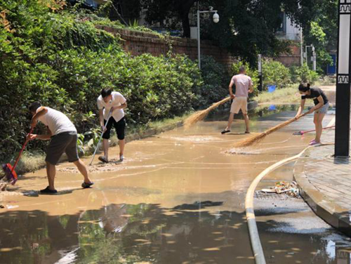 险情发生后,物业公司党总支书记、董事长、经理杨建斌第一时间赶到现场,检查受灾情况,与项目负责人一起统筹调度应急组织部署抢险工作,并叮嘱大家在抢险过程中一定做好个人防护工作,把员工人身安全放在首位。