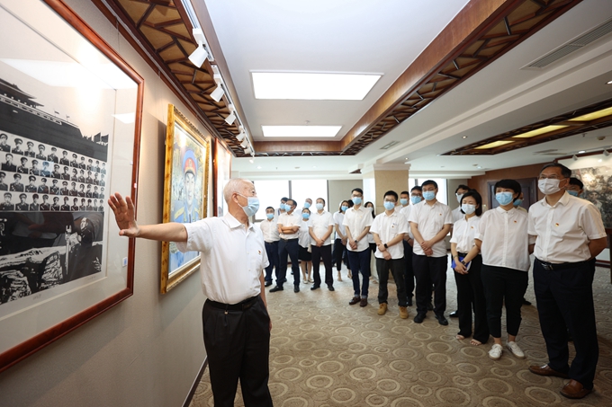 美术作品展开幕当天,四海画院名誉院长李任仕同志向公司党员干部详细介绍了每幅作品的历史背景和人物故事,以点带面生动再现了各个时代川渝籍共产党人的光辉事迹和党史人物的鲜活形象,讴歌了巴蜀大地的百年党史和前辈们的丰功伟绩。
