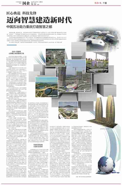 《重庆日报》在7版以《迈向智慧建造新时代?中国五冶助力重庆打造智慧之都》为题对中国五冶集团智慧建造成果及企业发展状况进行了整版报道。报道指出:自上世纪50年代响应中央号召,南下参与重钢建设开始,中国五冶集团就扎根西南,不仅在重庆不仅在重庆参与了仙桃数据谷、长城汽车永川生产基地、巴南区鱼洞棚户区改造安置房、蓝光中央广场等一批工业、民生和商业项目建设,在四川、贵州、云南等地打造了一大批重点精品项目,有力助推了区域经济社会发展,是匠心典范和科技先锋。