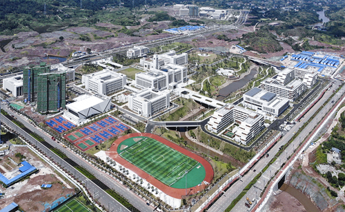 据悉,成都理工大学宜宾校区位于四川省宜宾市临港经济技术开发区,共分为2期工程建设,中国五冶承建的一期工程总用地面积约600亩,总建筑面积约23万平方米,建设内容包括图书馆、教学楼、校行政用房、基础实验楼、综合实验楼、风雨操场、学生宿舍、食堂、后勤及附属配套等共计15个单体建筑,以及5座校内桥梁、2条水系及河岸景观打造等。